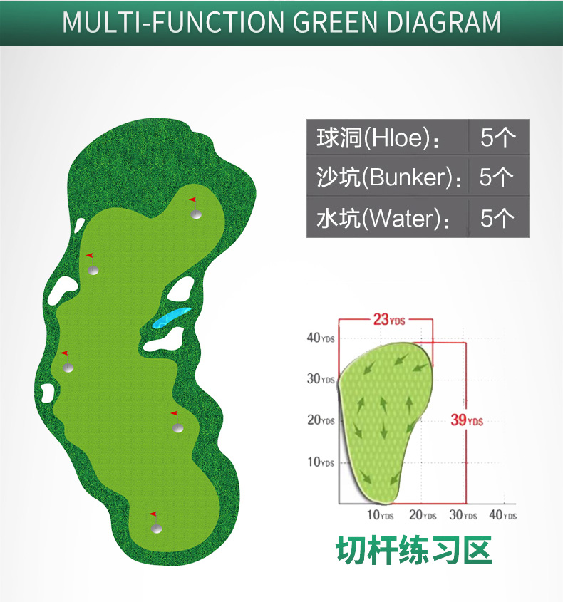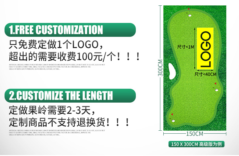 [Có thể tùy chỉnh] Thiết bị luyện tập đánh gôn kỹ thuật xanh nhân tạo 10cm trong nhà