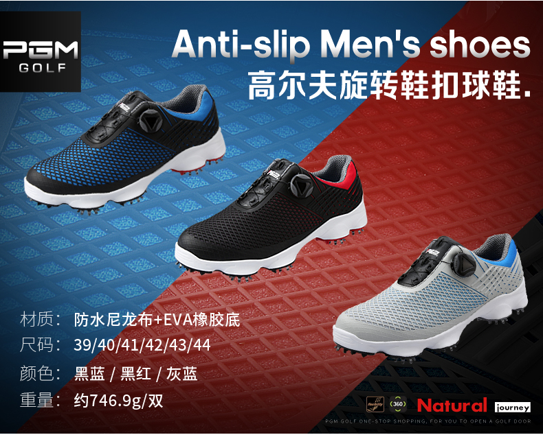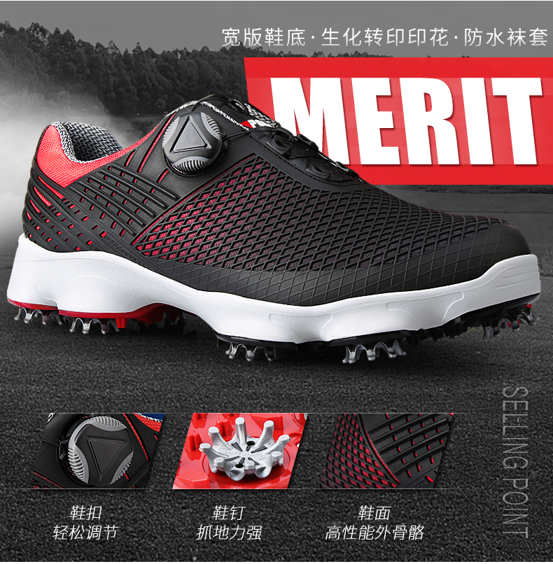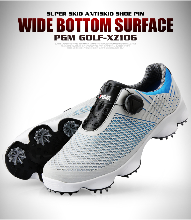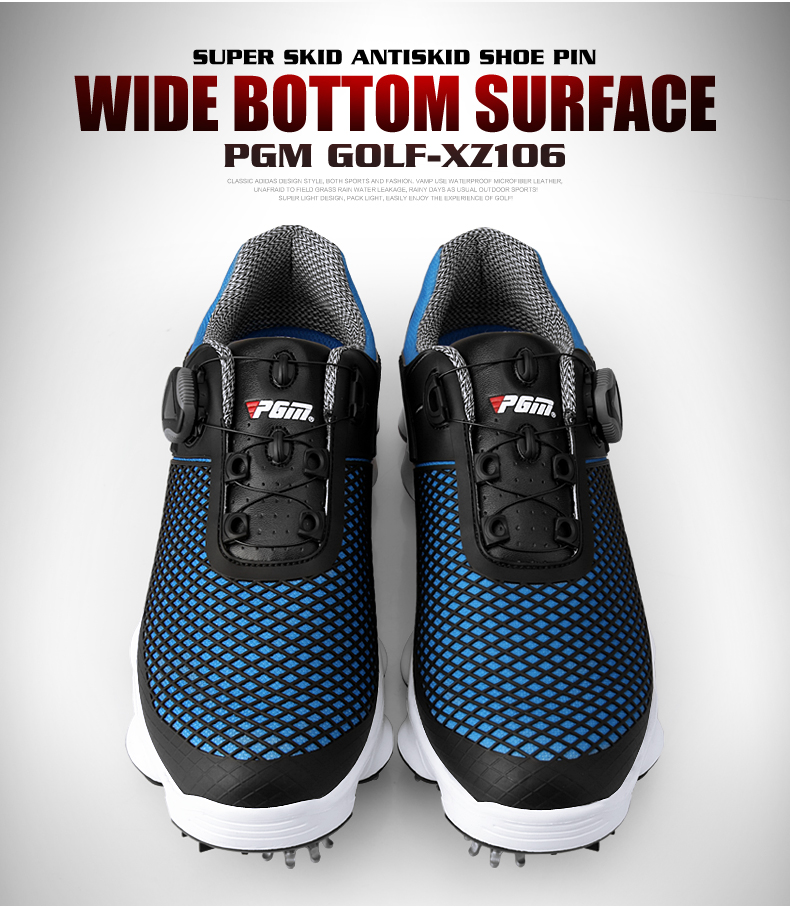 Giày Golf PGM Nam Năng Động Mũi Nhọn Giày Chống Nước Đế Rộng Chống Nước Nam Núm Dây