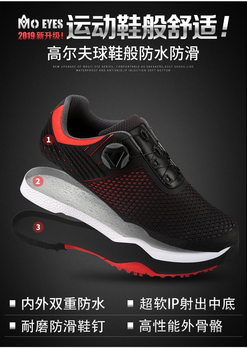 Mắt thần mới giày golf nam chống thấm nước thoải mái thể thao bình thường giày golf nam không gai