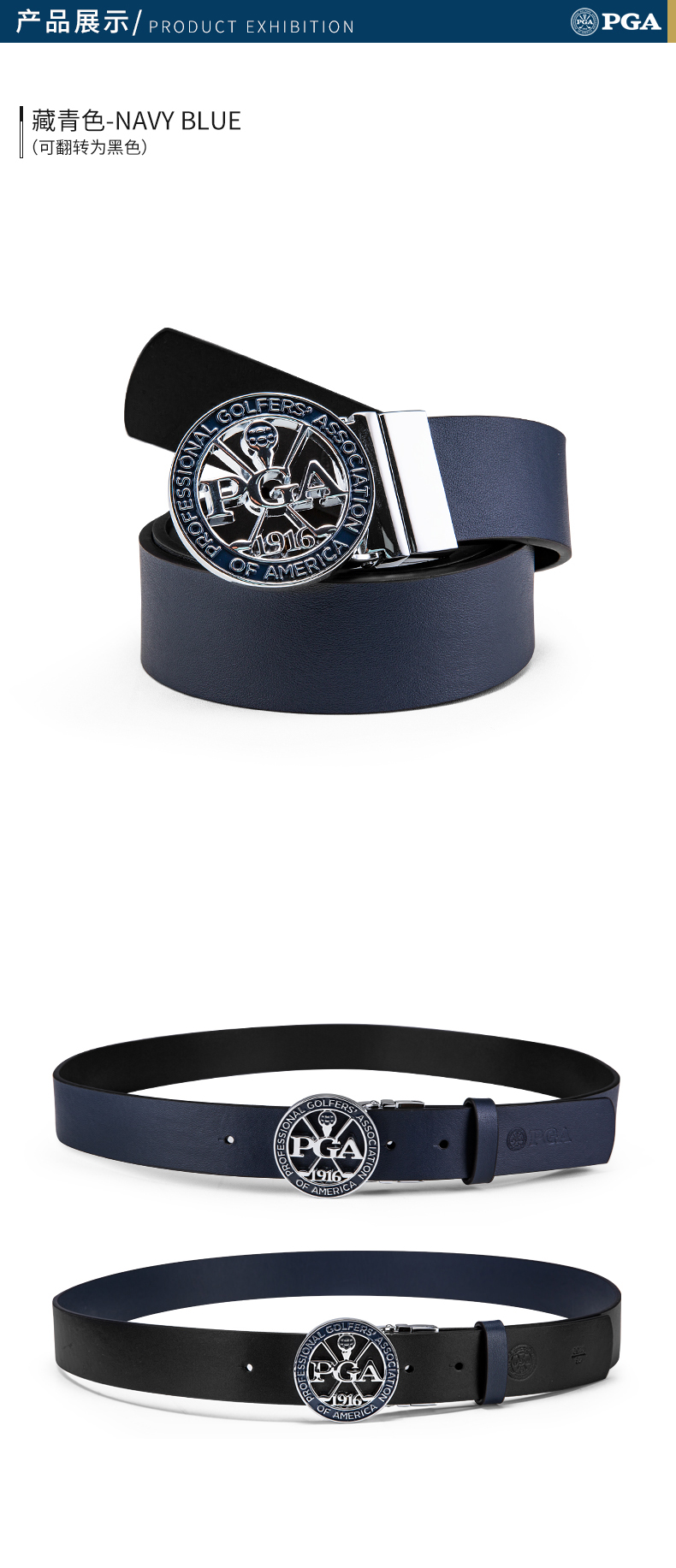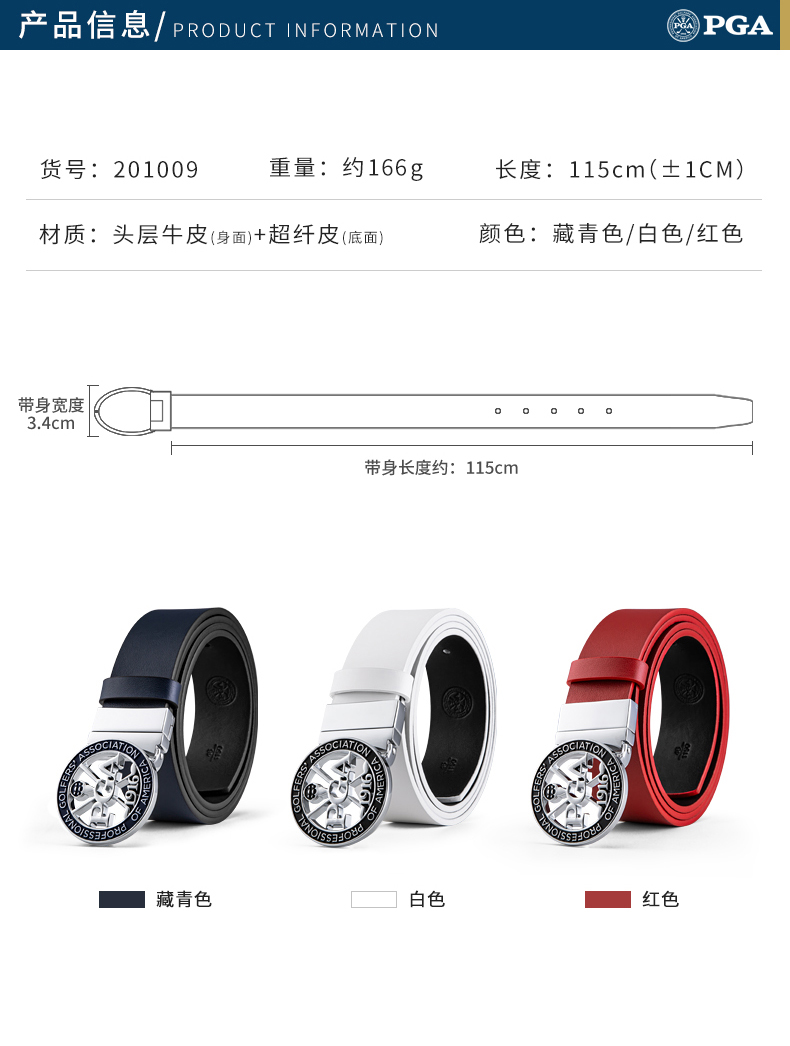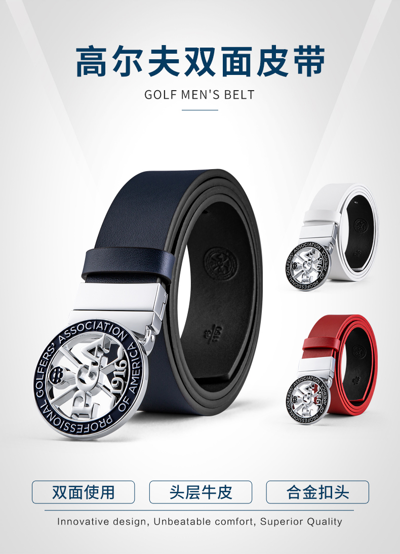 Mỹ PGA Golf nam 2 mặt dây da lớp trên cùng khóa hợp kim da sang trọng lịch lãm dây da