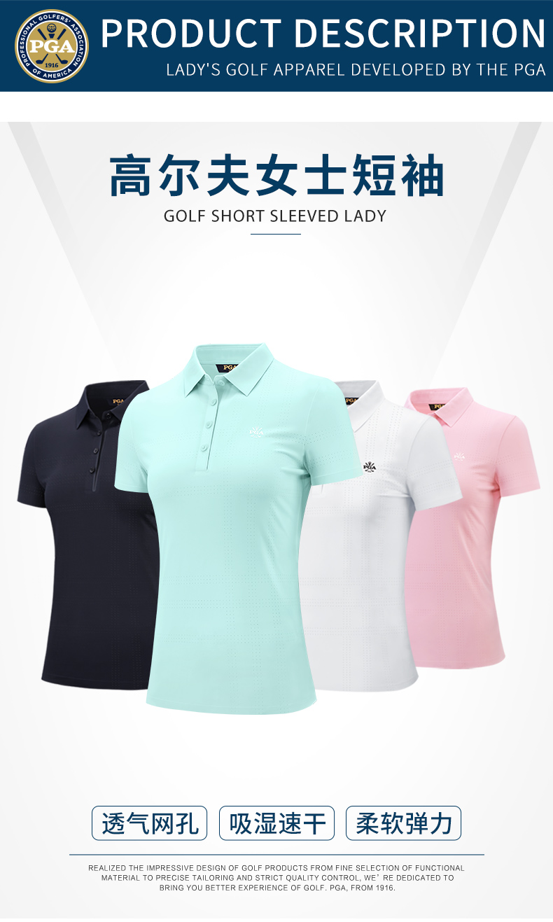 Mỹ PGA Golf Nữ Mùa Hè Áo Thun Ngắn Tay Quần Áo Lỗ Thoáng Khí Thể Thao Nhanh Khô Mỏng Top Quần Áo