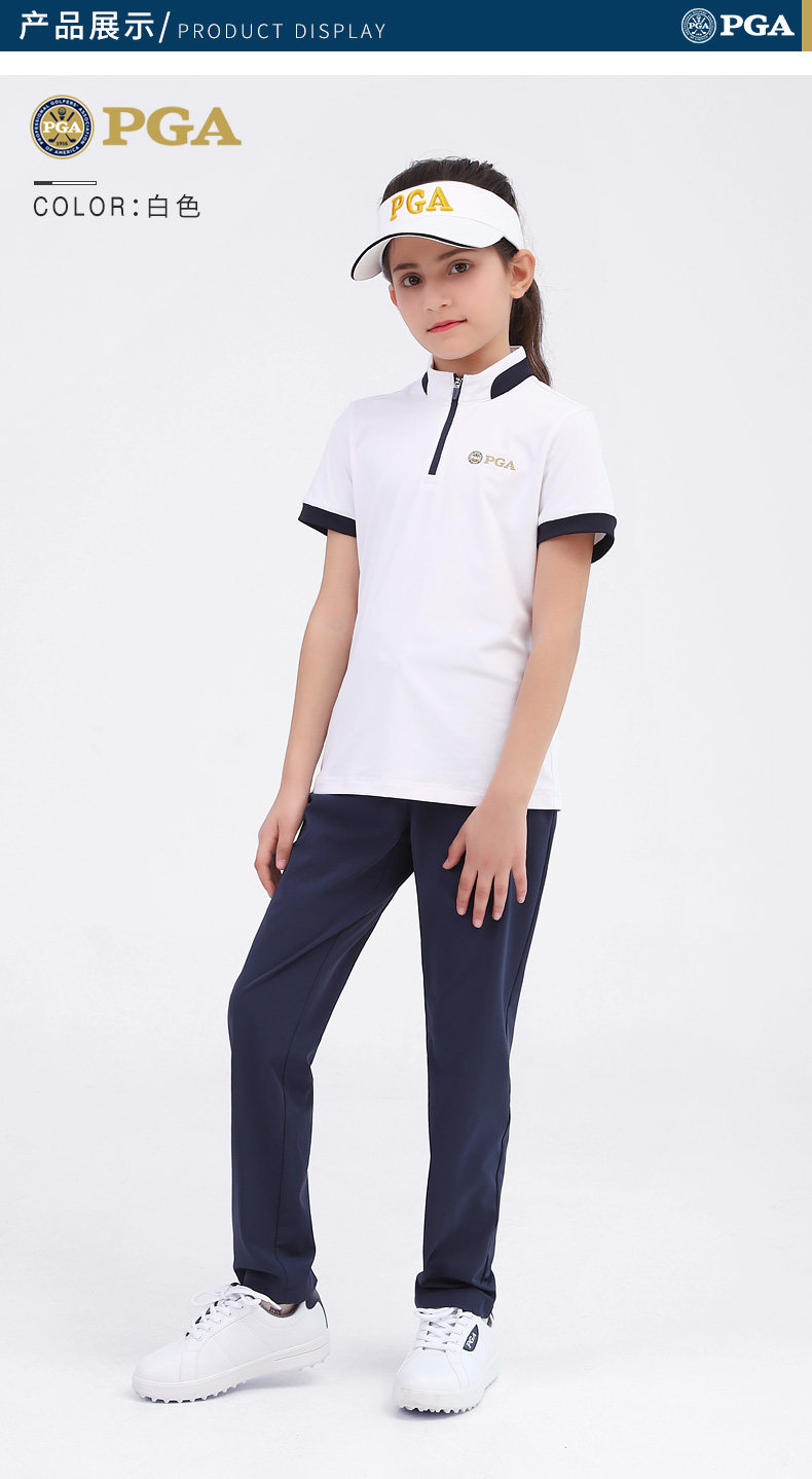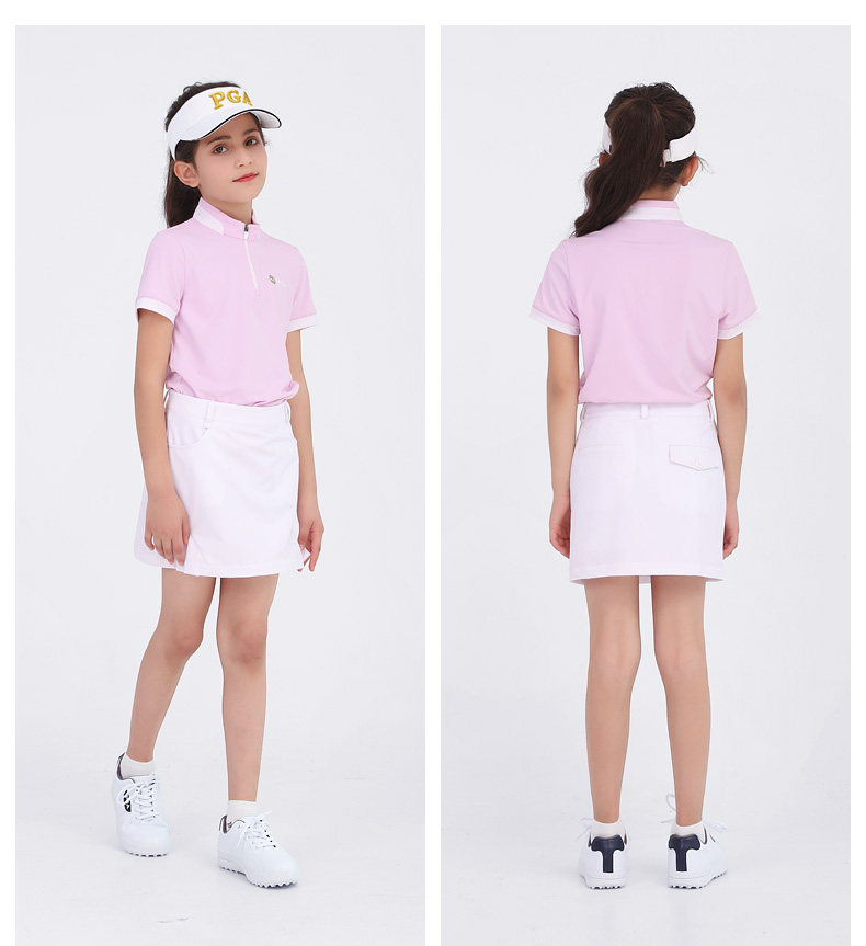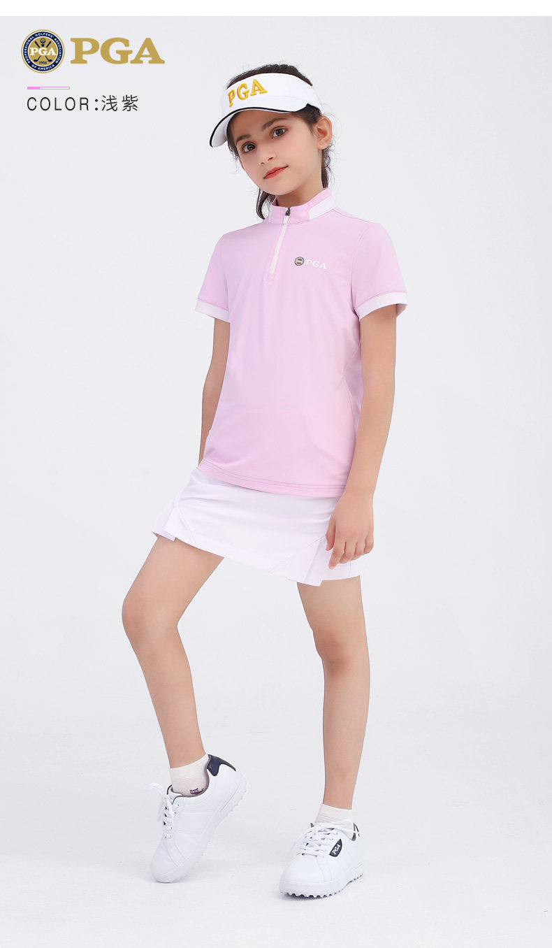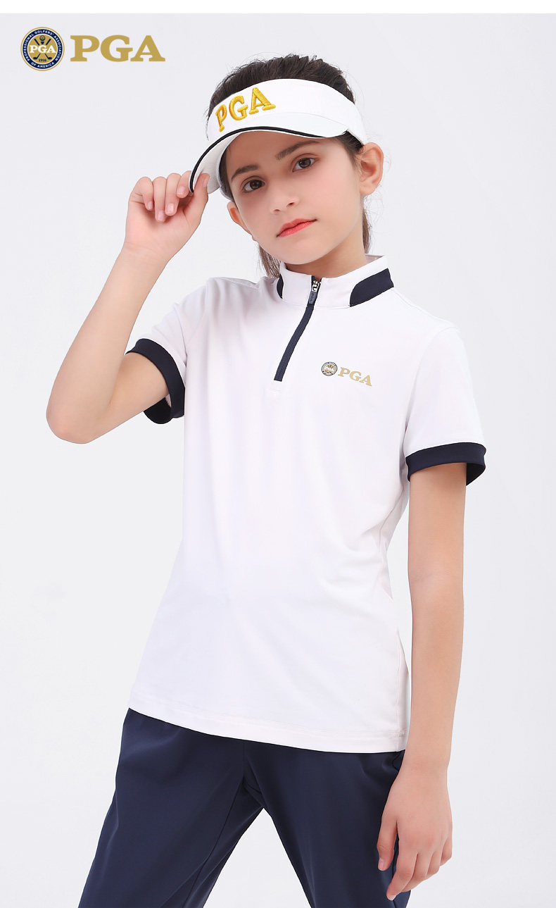 Mỹ PGA quần áo chơi gôn trẻ em cô gái mới áo thun ngắn tay quần áo thể thao trẻ em mùa hè quần áo trẻ em