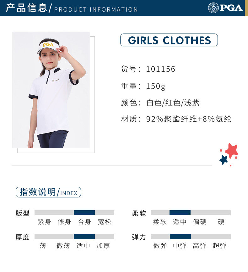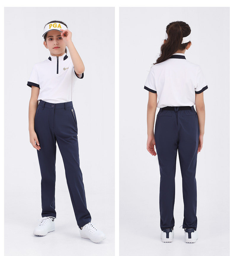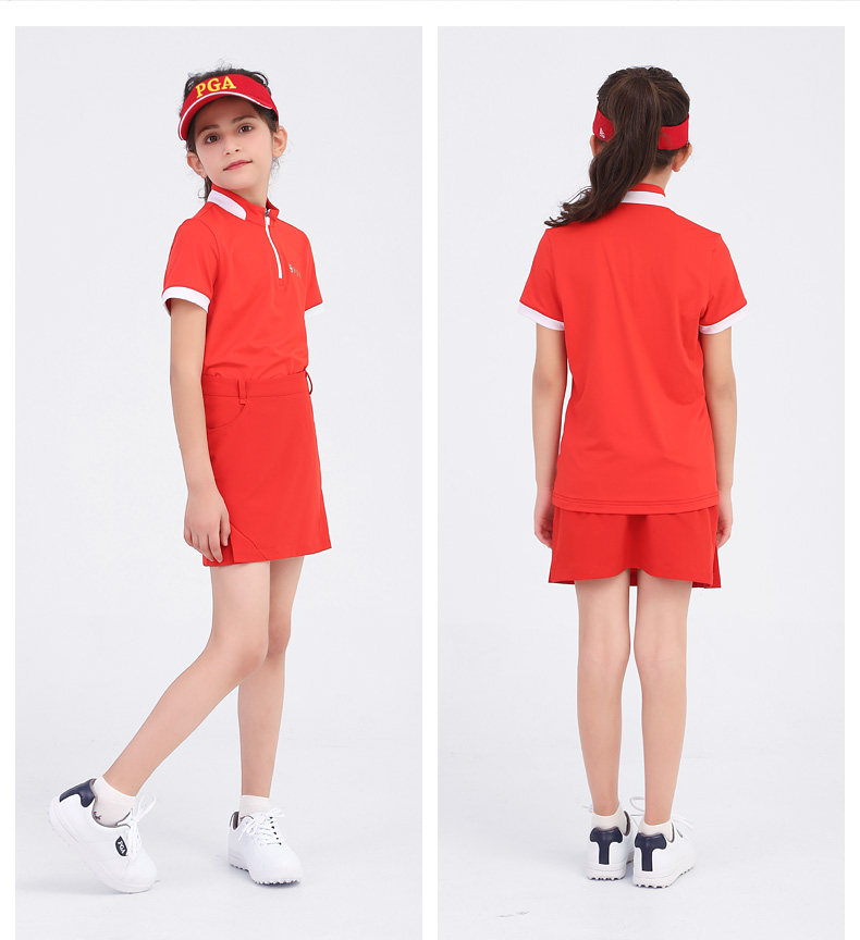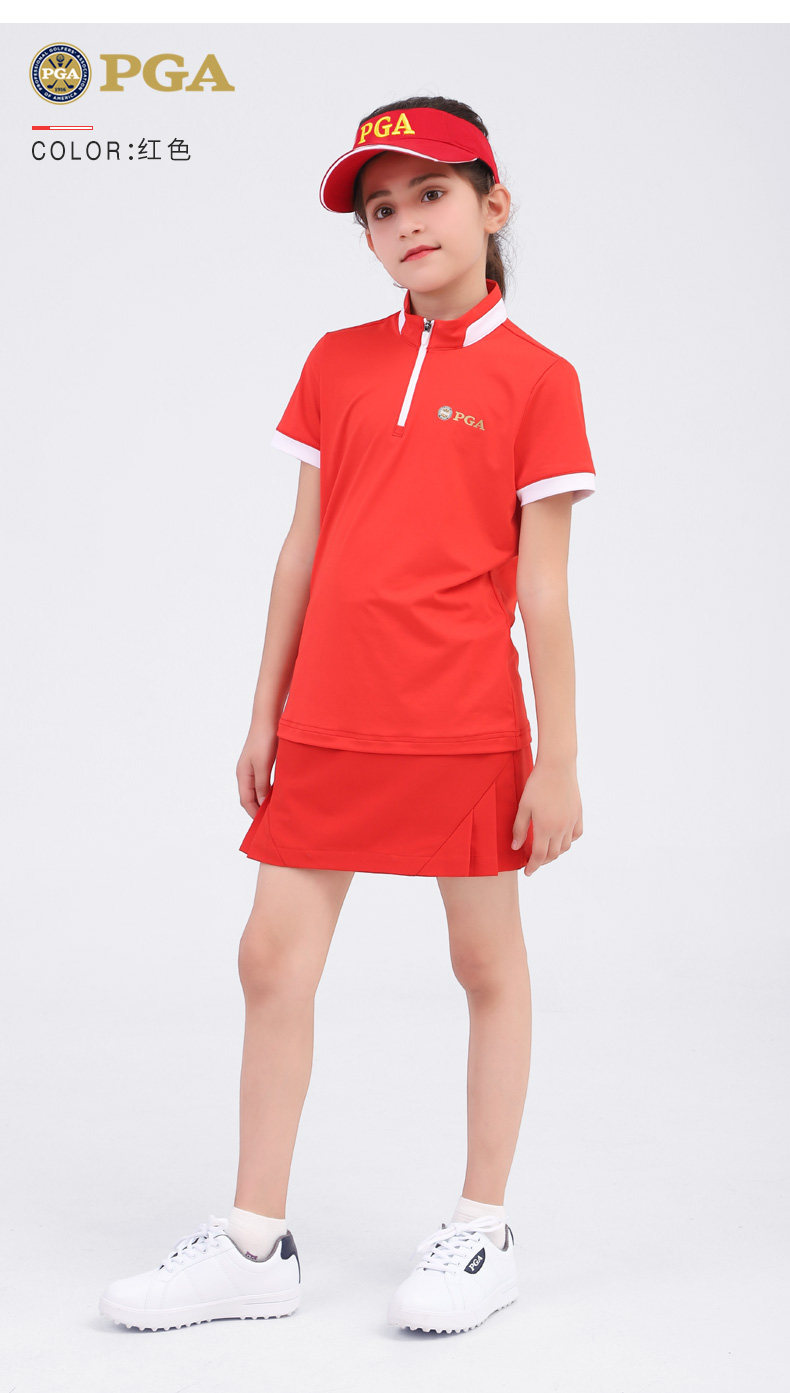 Mỹ PGA quần áo chơi gôn trẻ em cô gái mới áo thun ngắn tay quần áo thể thao trẻ em mùa hè quần áo trẻ em