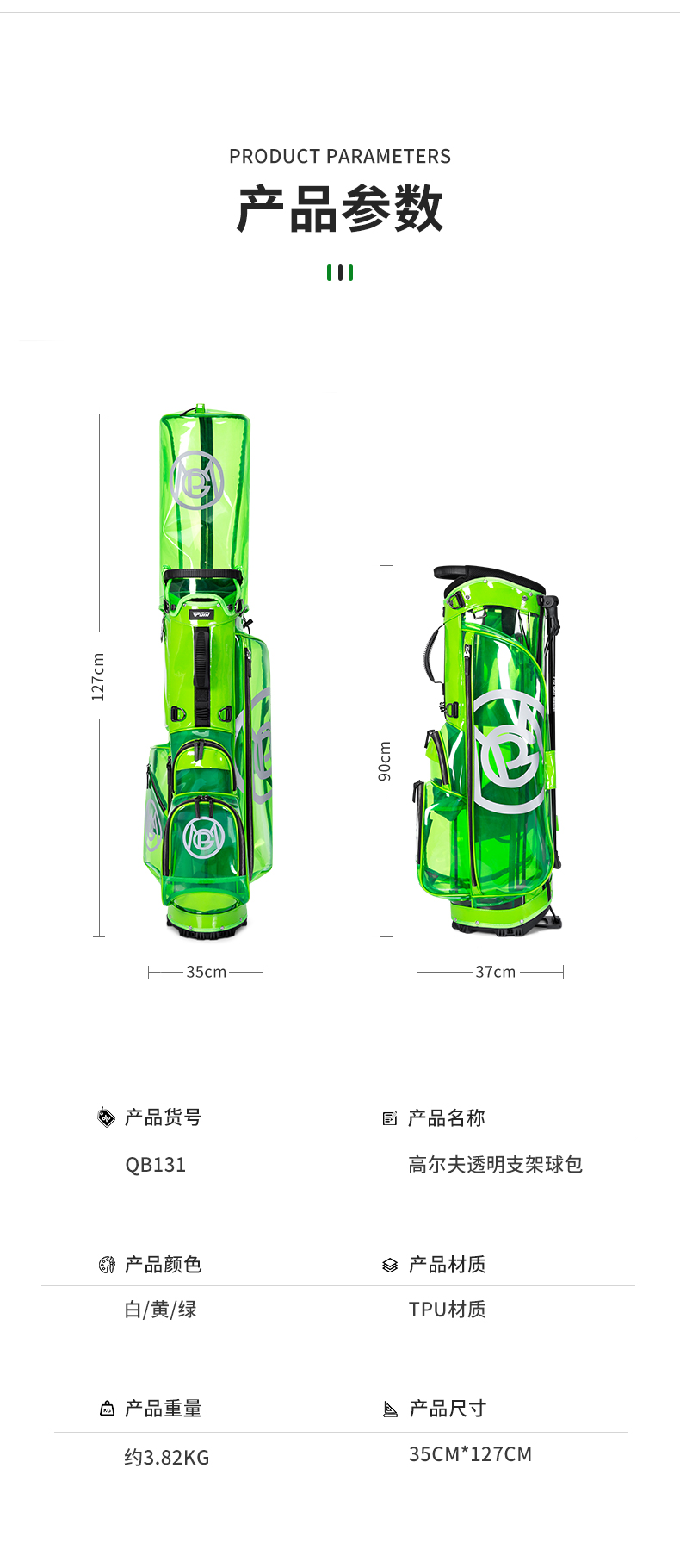 Túi chơi gôn PGA của Mỹ Túi nữ có giá đỡ Túi câu lạc bộ trong suốt đầy màu sắc Túi du lịch di động