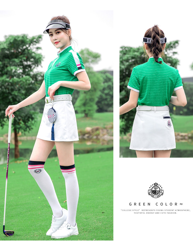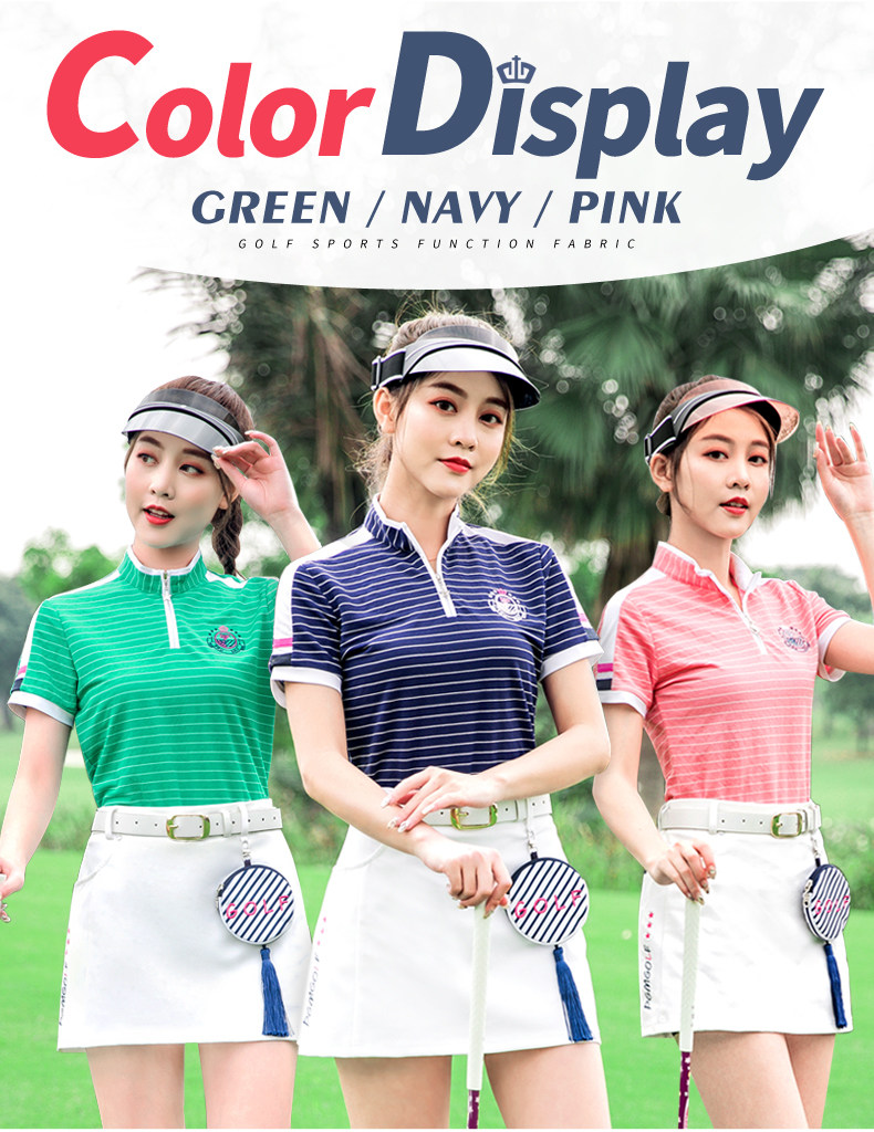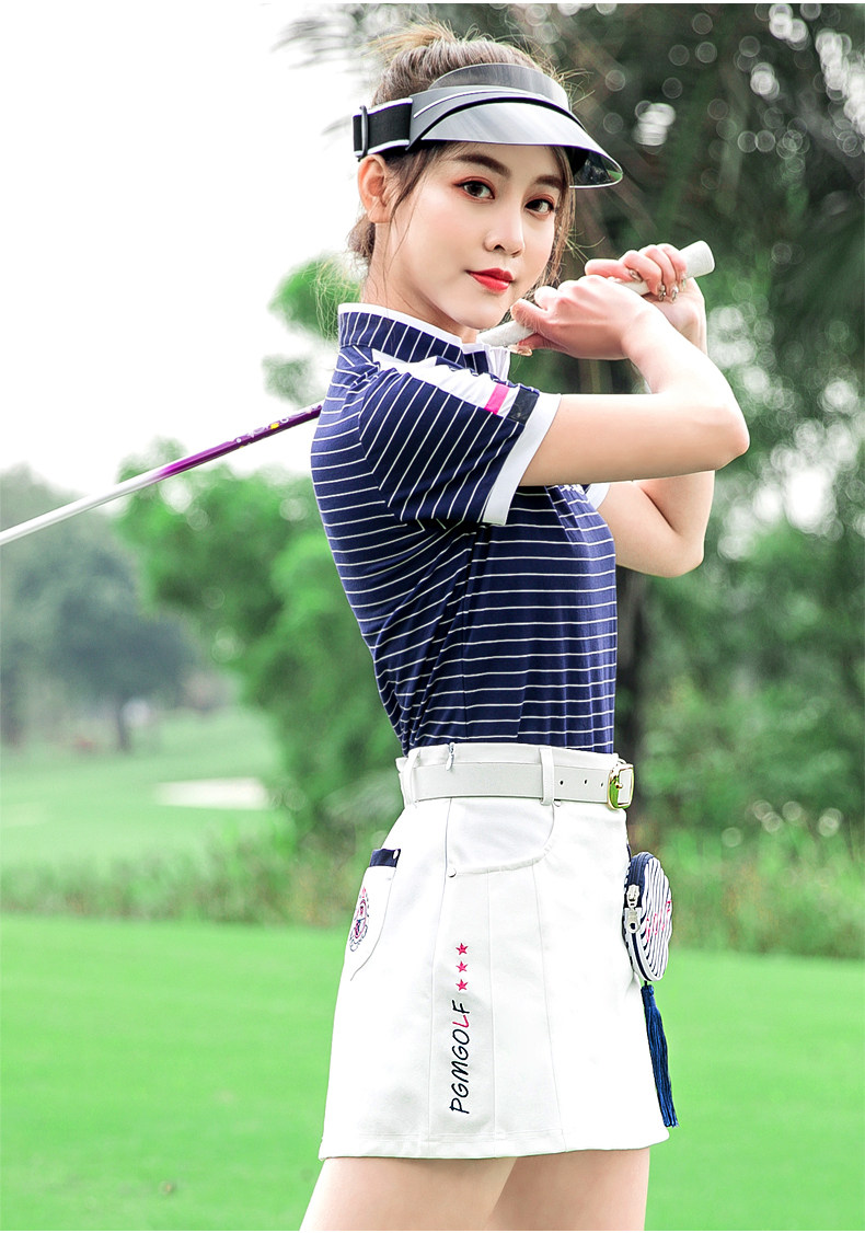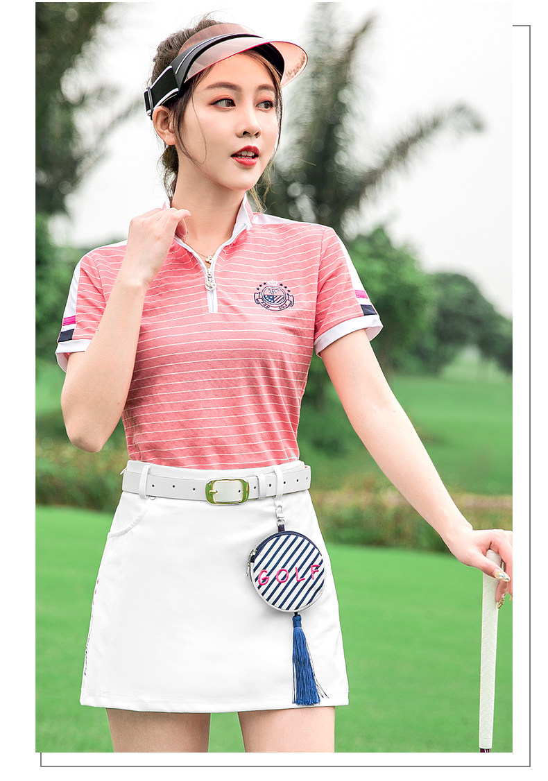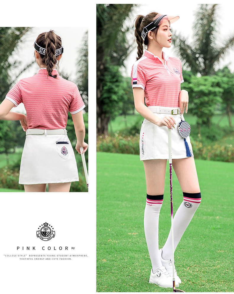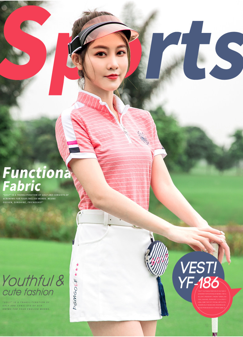 PGM phiên bản Hàn Quốc của quần áo golf hàng đầu dành cho nữ chơi gôn bộ đồ thu đông nữ quần áo áo phông sọc ngắn tay
