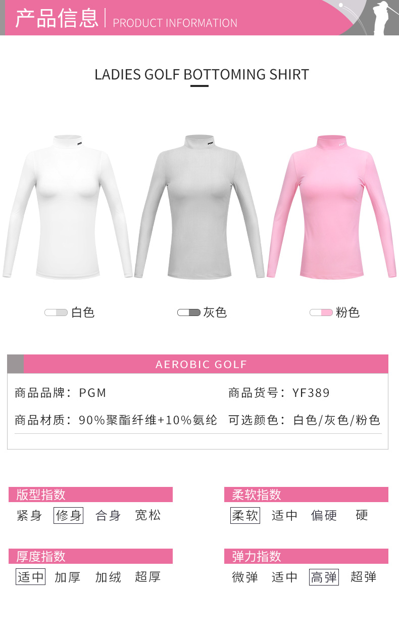 Quần áo golf PGM áo khoác nữ thu đông quần áo bên trong hấp thụ ánh sáng và sưởi ấm quần áo cổ đứng ấm áp và thoải mái