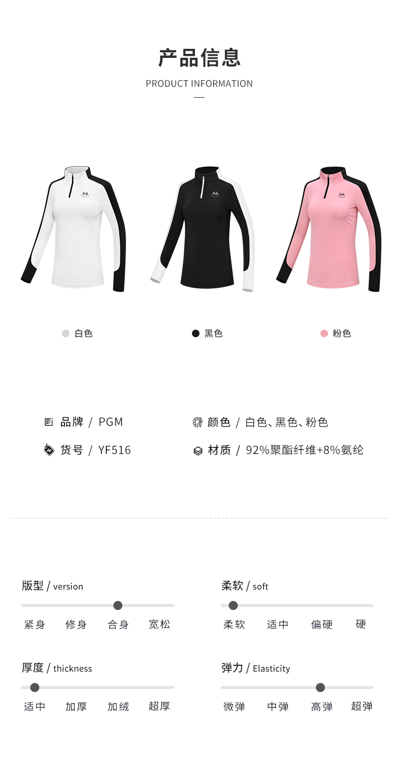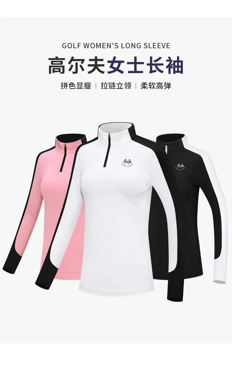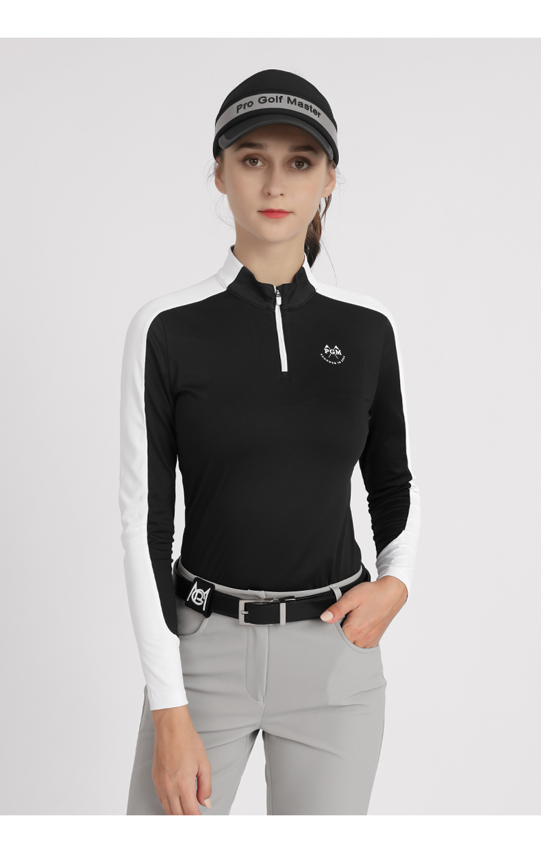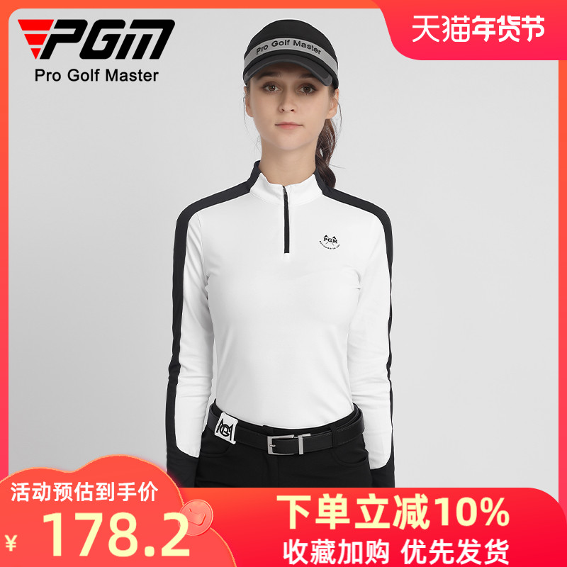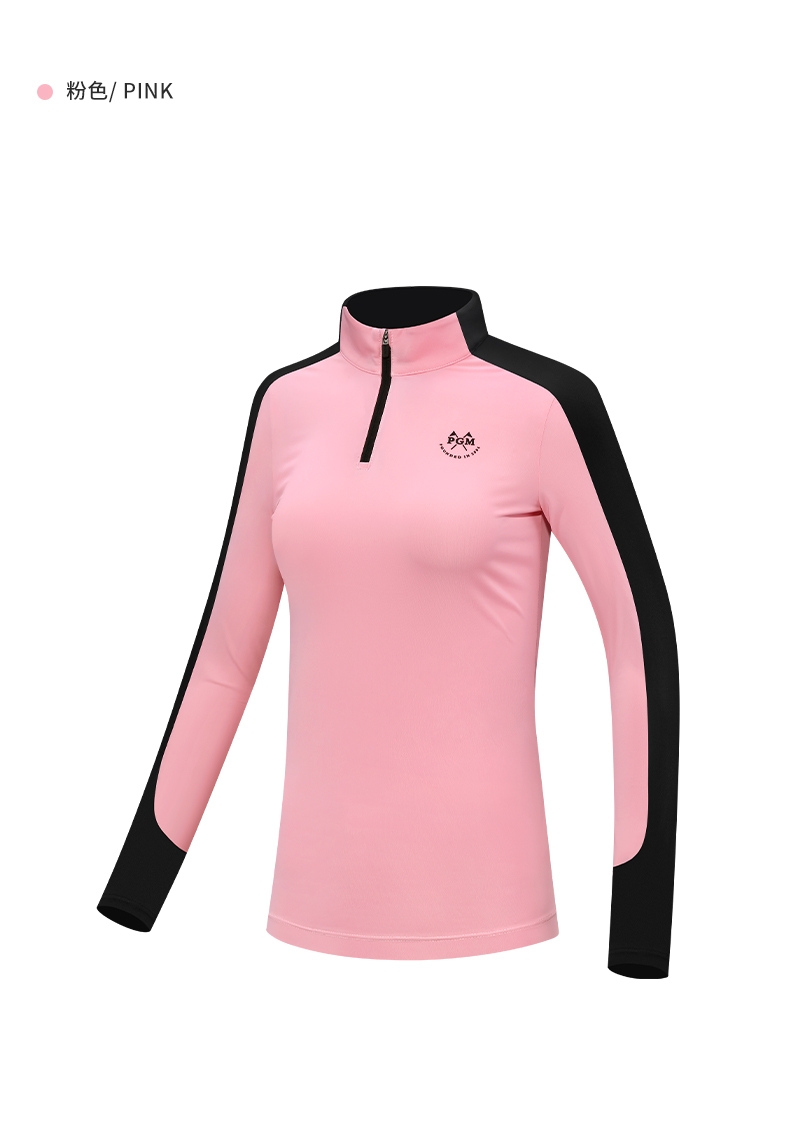 Quần áo golf PGM quần áo dài tay mùa thu đông quần áo giảm béo phối màu khóa kéo cổ đứng Áo thun quần áo nữ