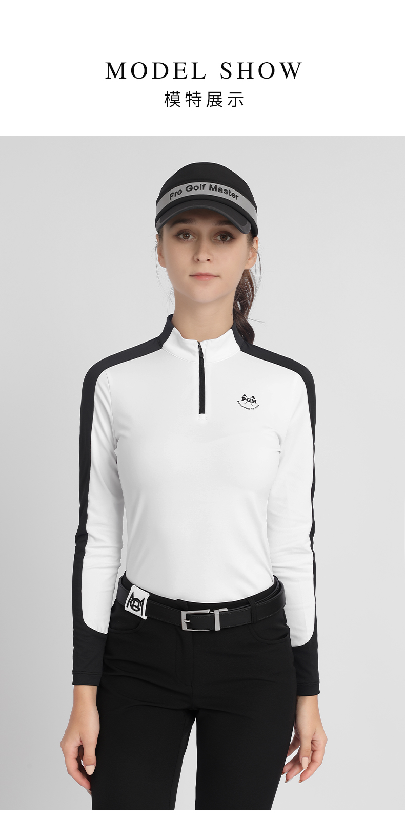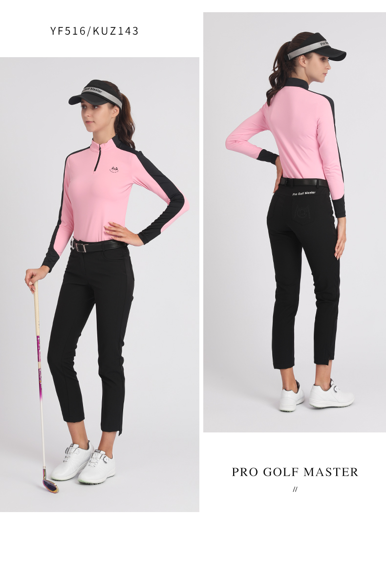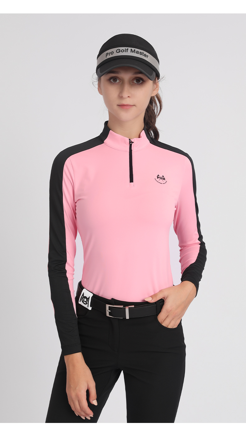 Quần áo golf PGM quần áo dài tay mùa thu đông quần áo giảm béo phối màu khóa kéo cổ đứng Áo thun quần áo nữ