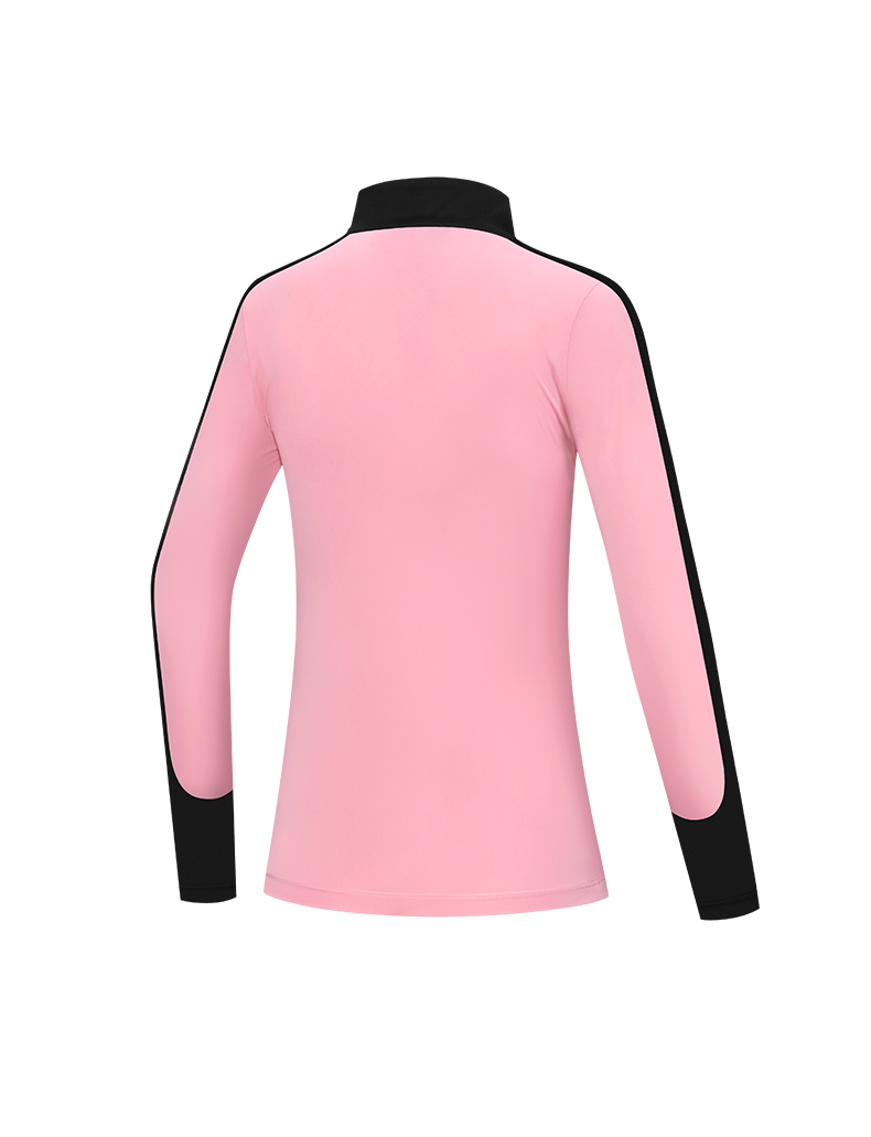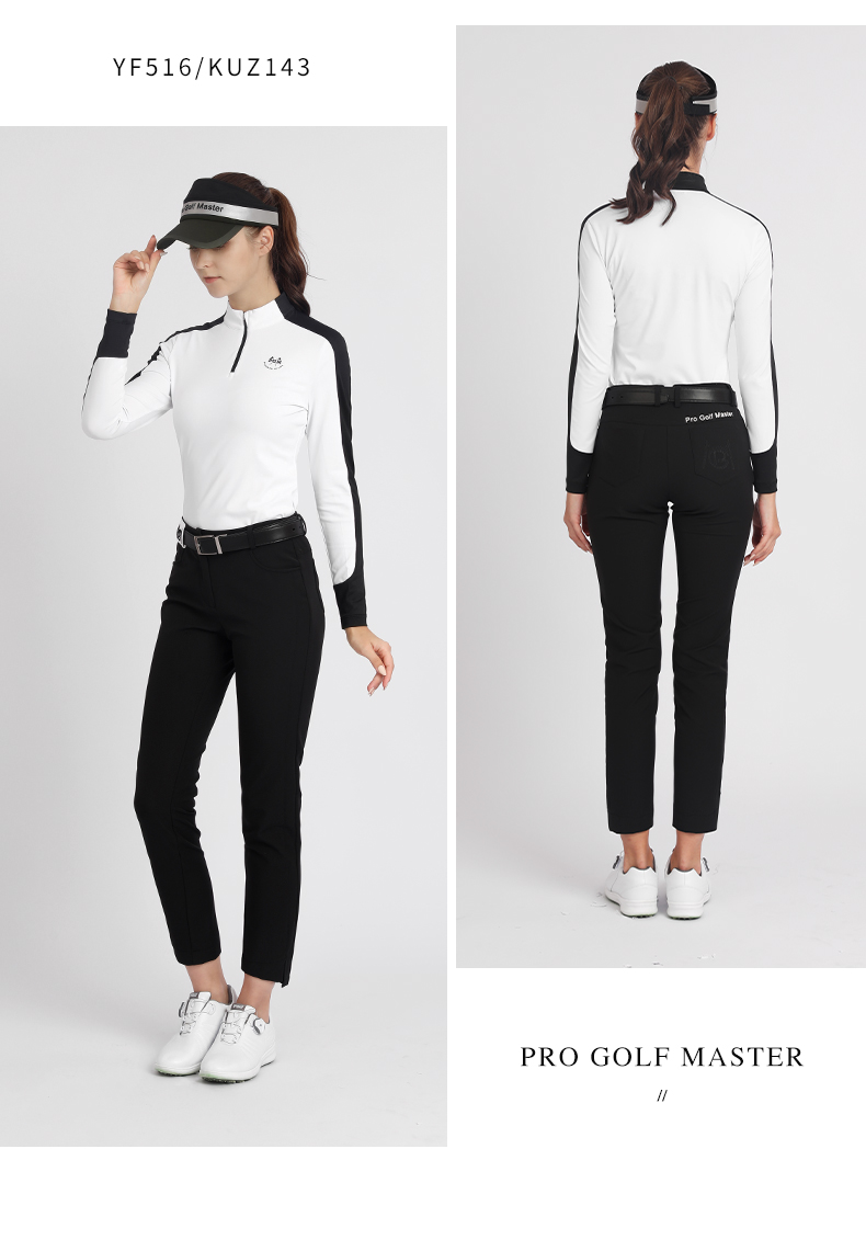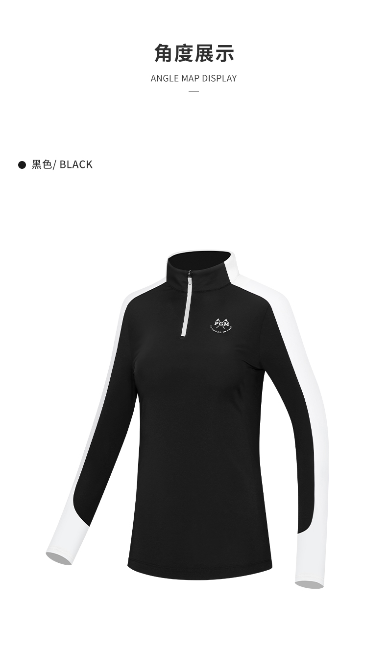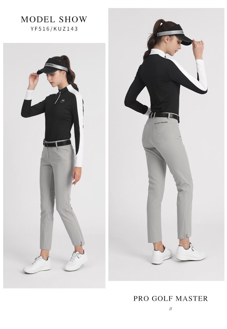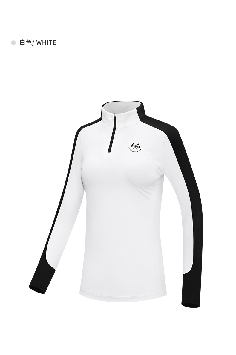 Quần áo golf PGM quần áo dài tay mùa thu đông quần áo giảm béo phối màu khóa kéo cổ đứng Áo thun quần áo nữ