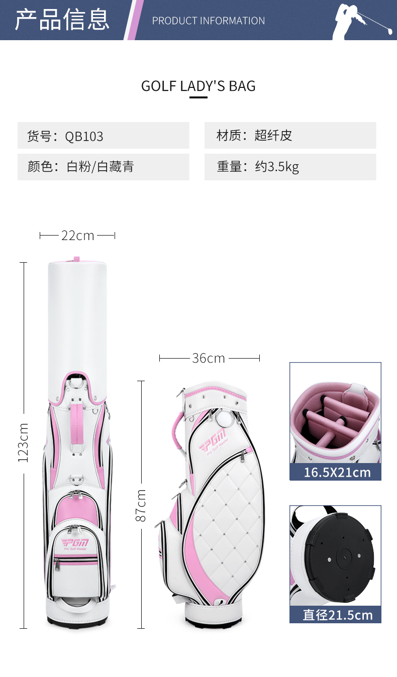 Túi Golf PGM Mới dành cho Nữ Túi tiêu chuẩn Kính thiên văn Chống nước Túi Câu lạc bộ Du lịch Di động