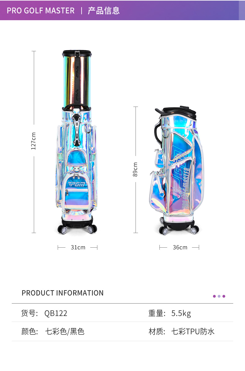 Túi chơi gôn PGA của Mỹ Túi nữ có giá đỡ Túi câu lạc bộ trong suốt đầy màu sắc Túi du lịch di động