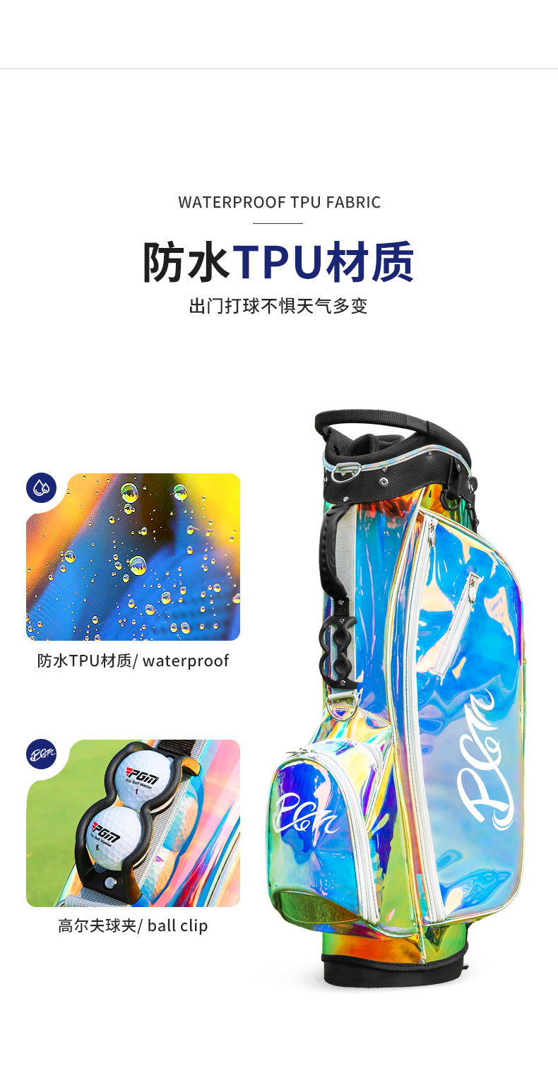 Túi chơi gôn PGA của Mỹ Túi nữ có giá đỡ Túi câu lạc bộ trong suốt đầy màu sắc Túi du lịch di động