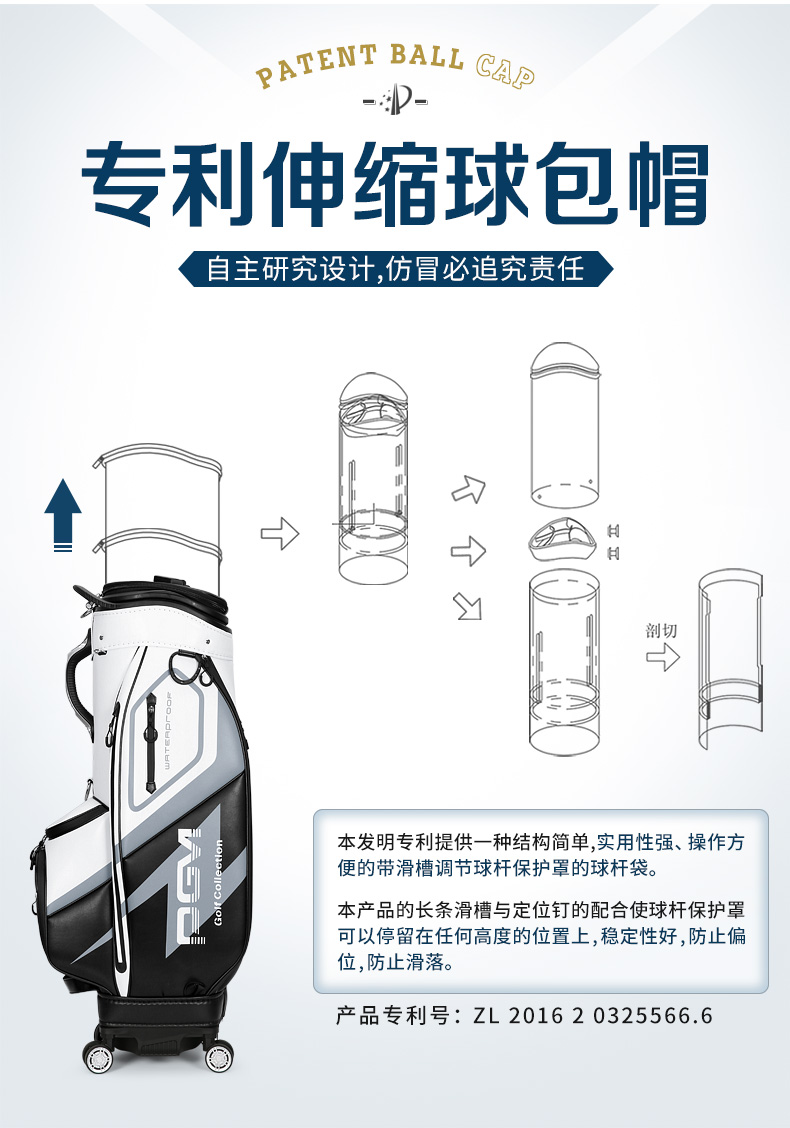 Mắt thần mới túi golf nam túi tiêu chuẩn dạng ống lồng nén ba chiều khuôn bốn bánh đẩy phẳng đẩy khí ký gửi