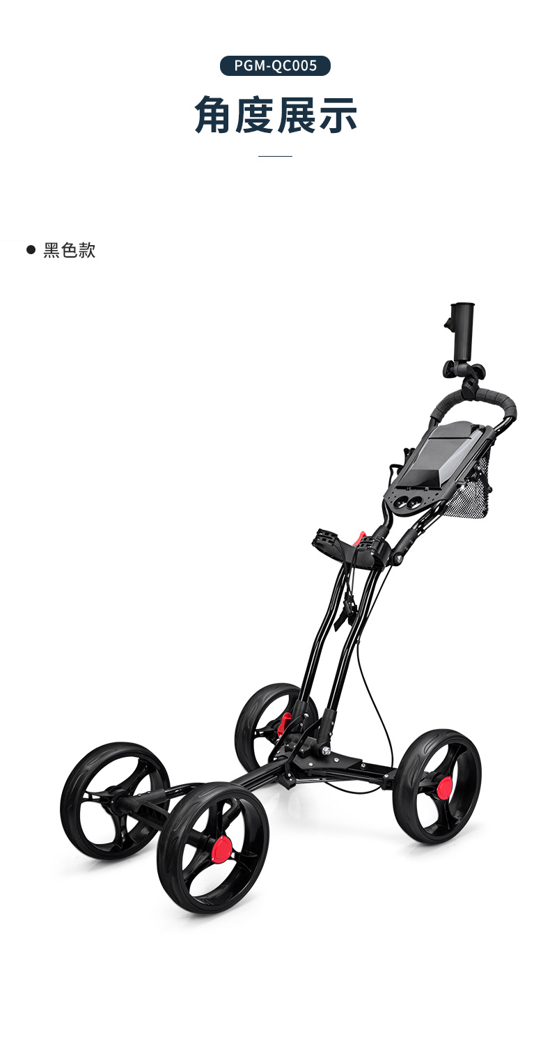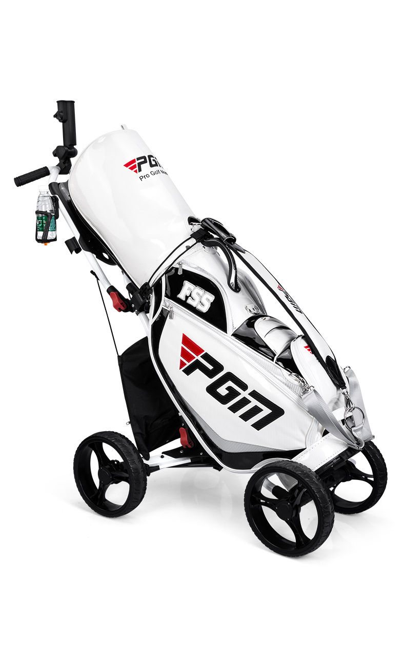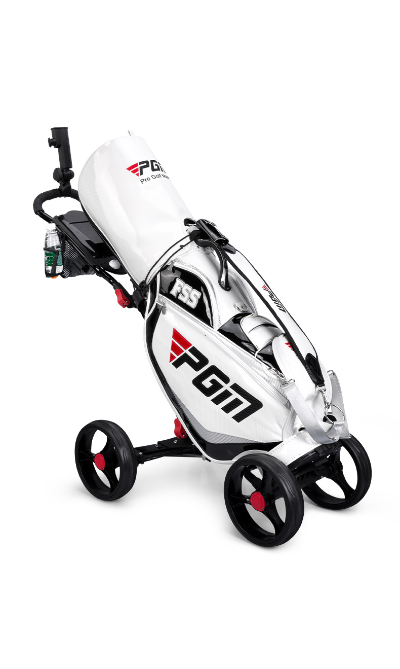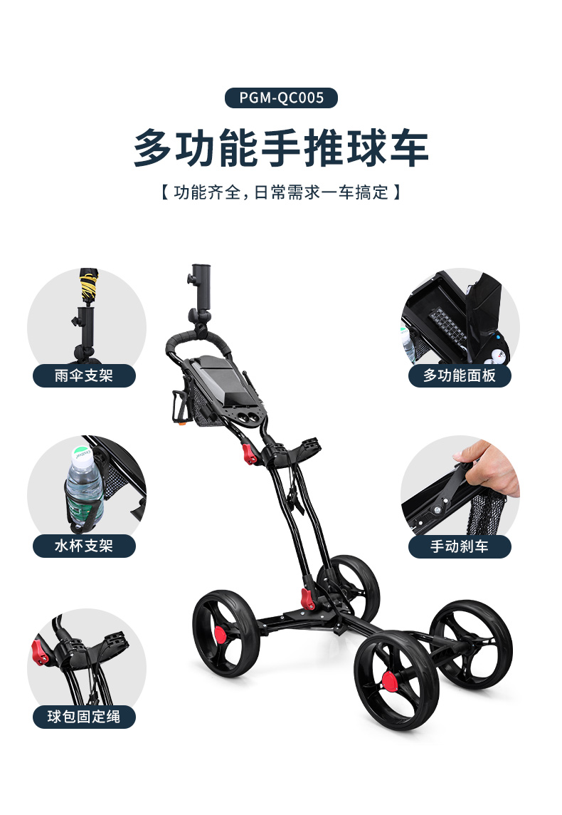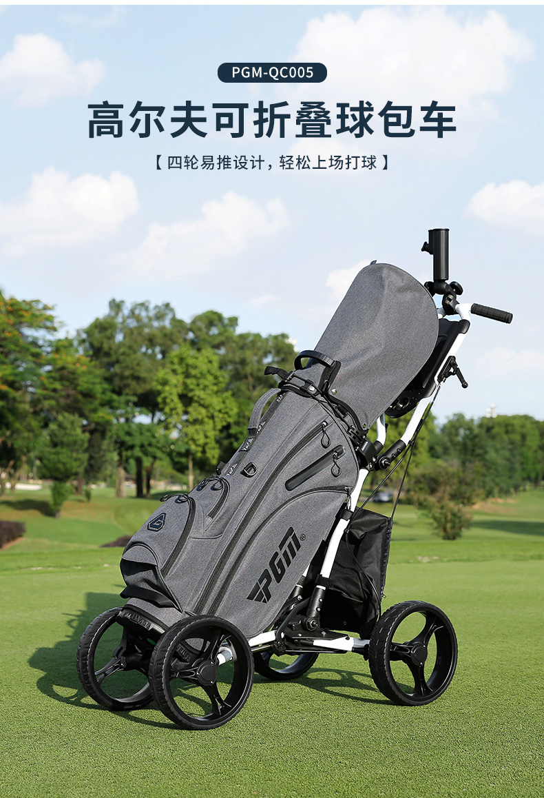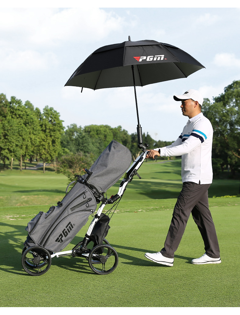 Xe bốn bánh chơi gôn PGM có thể gập lại xe đẩy tòa án phanh tay kéo xe có ô/giá đỡ chai nước