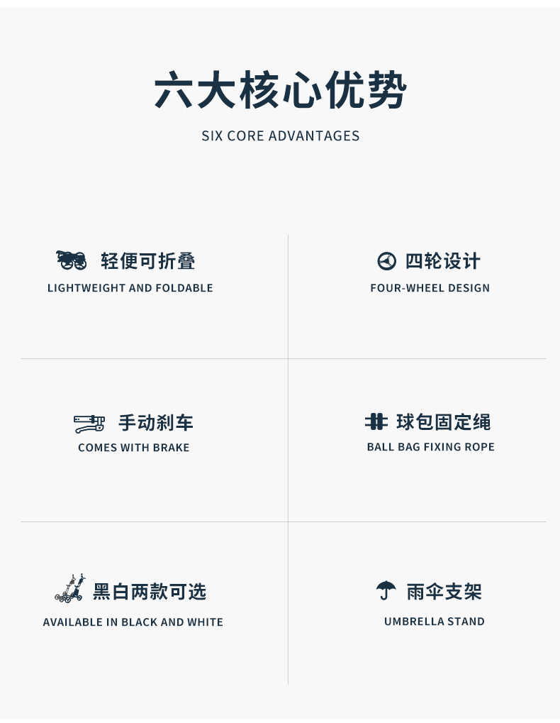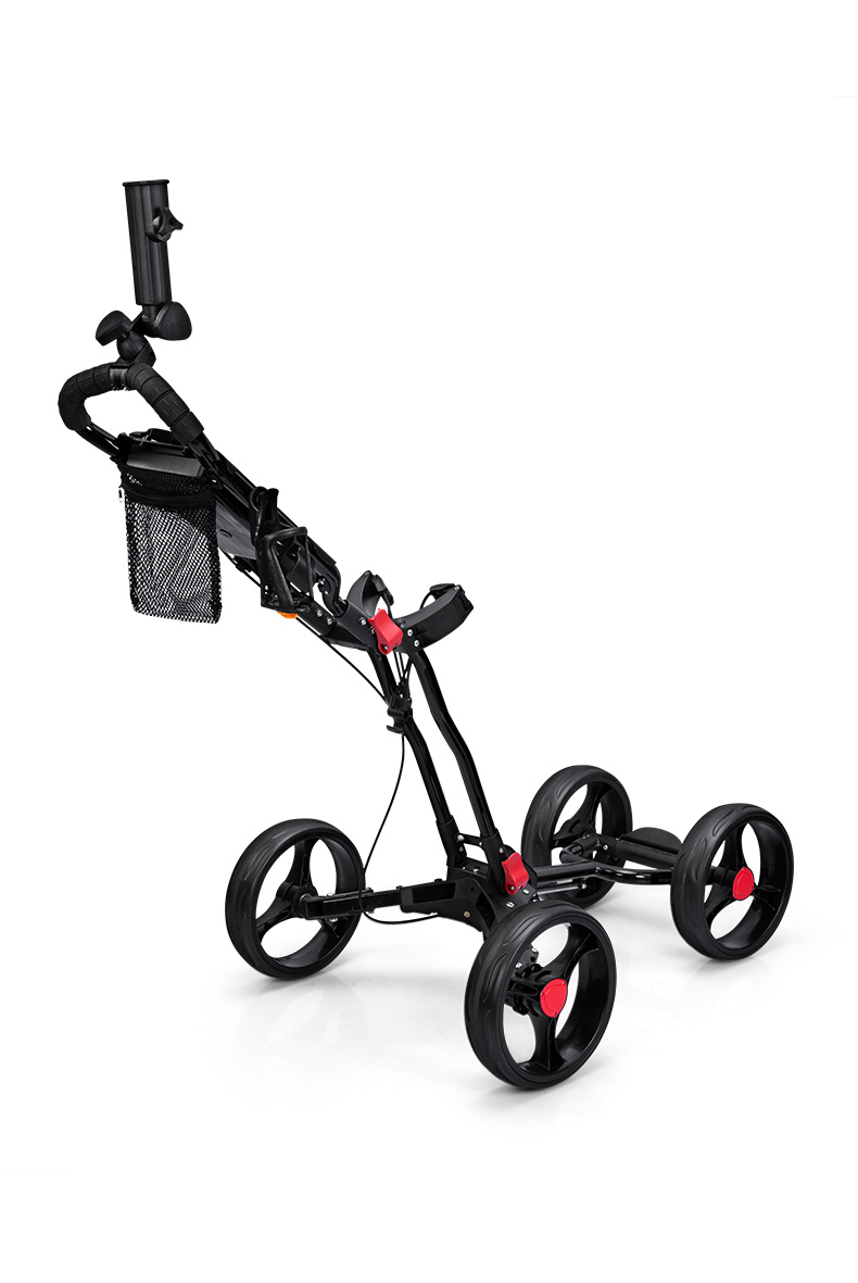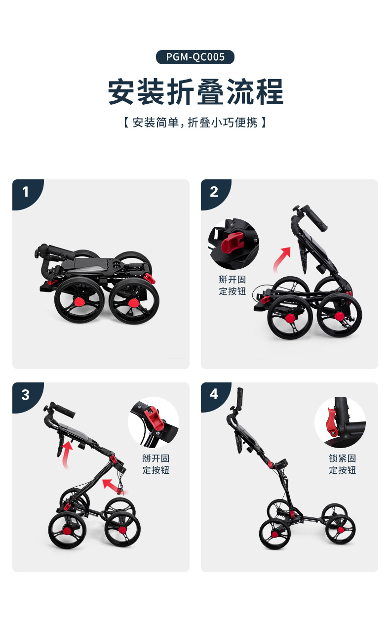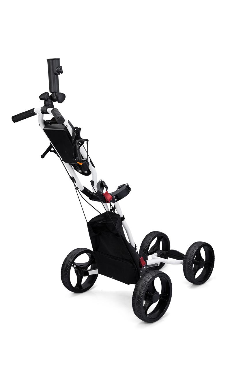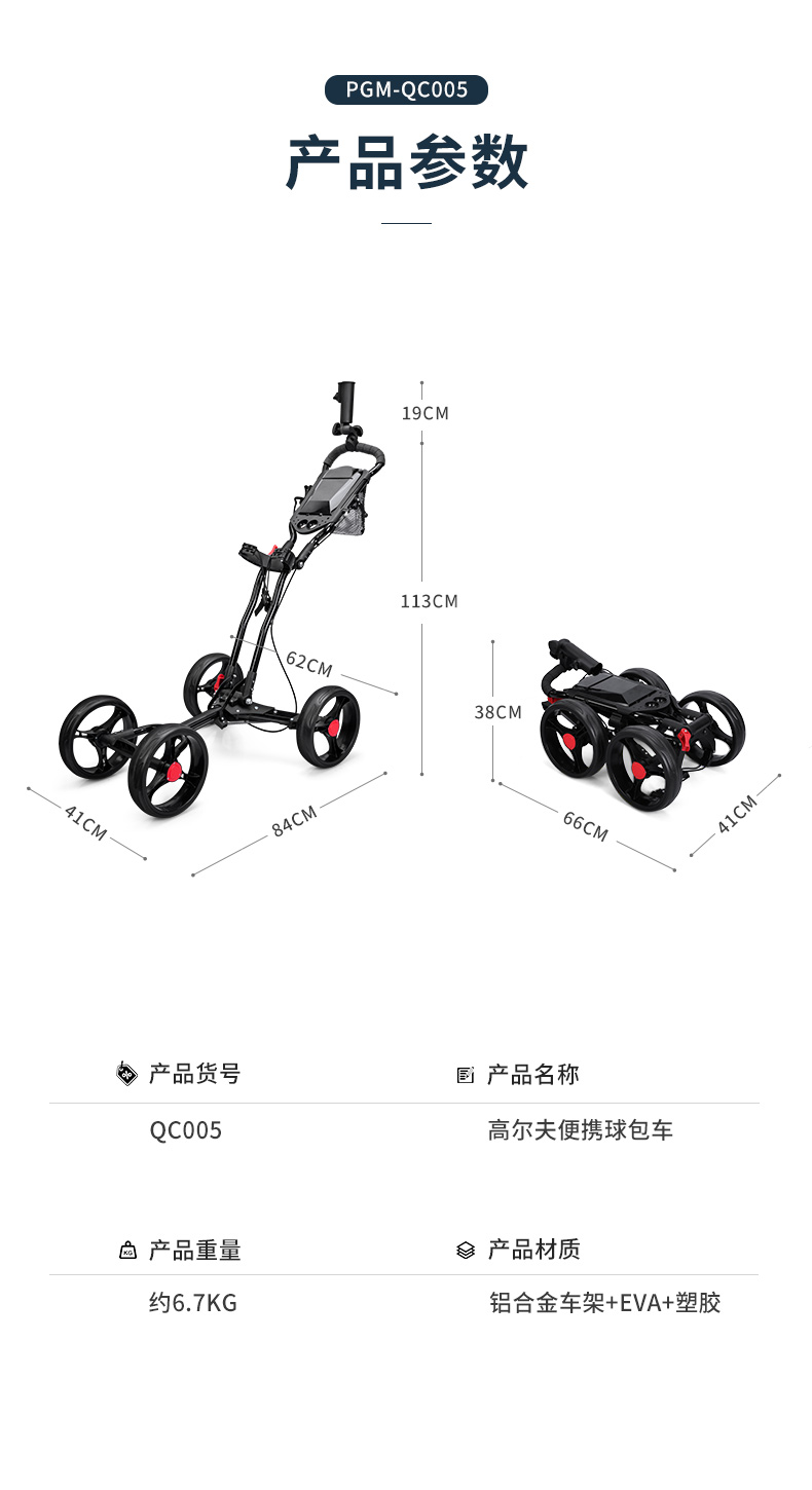 Xe bốn bánh chơi gôn PGM có thể gập lại xe đẩy tòa án phanh tay kéo xe có ô/giá đỡ chai nước