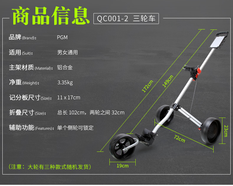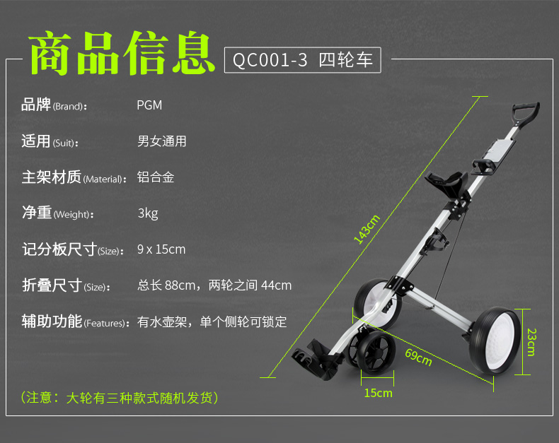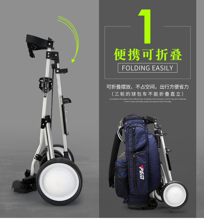 Xe đẩy túi golf PGM xe đẩy ba bánh xe đẩy tòa án xe đẩy bóng bốn bánh có thể gập lại